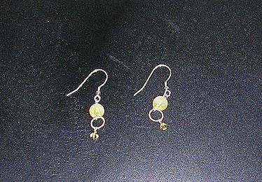 So, I took a wonderful earring-making class last night. There is an adorable beadshop about 30 minutes east of where I live called Simply Strung. My instructor (Kindra) was just excellent – sweet, articulate, funny… and exacting. Just made to order. Her instructions were clear and her teaching style was really effective. Anyway, here are my first earring attempts. They are displayed in the order of instruction. Kindra made the first one alongside with me, then talked me through its mate, plus the second pair and start of the third. For the last (sixth) earring, I was on my own.