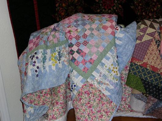My Picture Thought … visited a quilt shop in Frankenmuth, Michigan last week, called Front Porch Quilts. They’ve been open about 8 months and have a very nice store. They even host overnight quilting retreats using guest rooms in the second story of their old house/store. Anyway, near the check-out, this lovely gardeny quilt caught my eye. I may have to start collecting buttons!