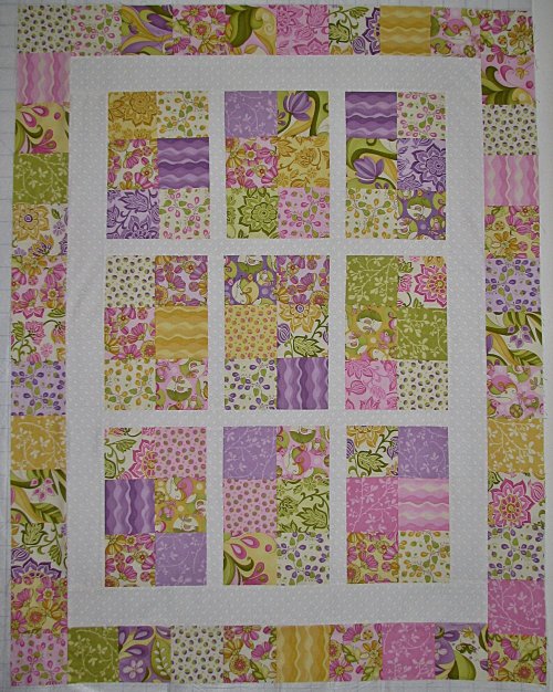 And finally, a picture of the quilt top I’m quilting on right now. I should be able to get the binding on later this week. I’m still healing some injured ribs, so reaching and stretching are problematic and have slowed my sewing on larger things. 😦 Please excuse the Quilt Inspector who wandered into the frame: