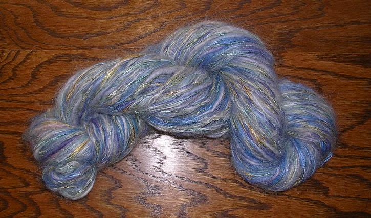 Also, I stopped by Michigan’s Sheep and Wool festival two weeks ago, and treated myself to the following. It was pricey, but SO pretty with various fibers and thin gold silk ribbon wound in. This is called “Key Largo”, which finished selling me on a skein. Unfortunately (or not), it was the last booth I stopped at, so my cash reserves had dwindled, or heaven knows how much I might’ve bought!