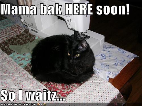 My Picture Thought … came downstairs one morning last weekend to a little Leyla curled up against my sewing machine. Had to caption it: