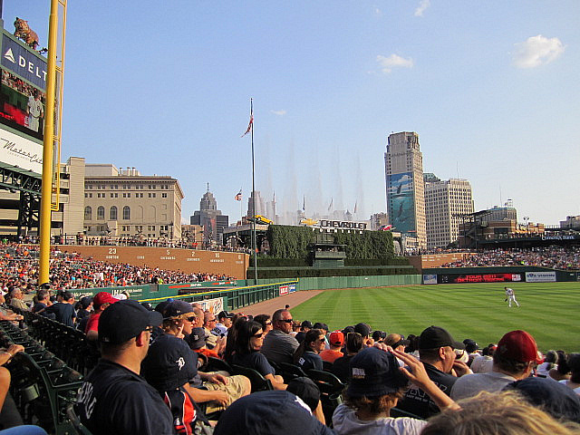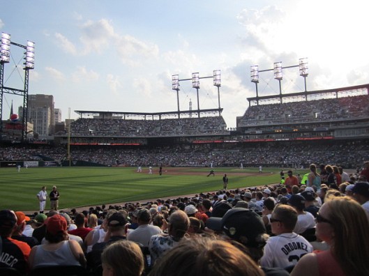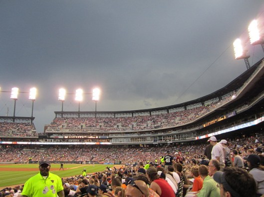 It had been beastly hot that day (July 2), as Michigan goes. The announcer before the game told us our official temp at 7:00pm was 97 degrees. We all cheered and congratulated ourselves on being such dedicated baseball fans (if not the sort of fan that cools the air.)