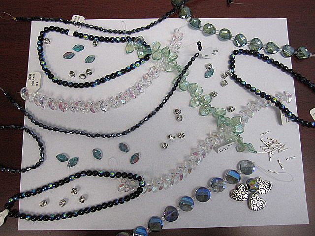 It has been a year or two since I assembled any jewelry, so I was overdue for a trip to the bead store!  I LOVE Bead Haven in Frankenmuth, MI.  (They used to have photos which showed how adorable the store was; don’t know what happened to those.)  It is located in the Riverplace collection of shops and boutiques, on the south side of the picturesque Cass River.  But I digress.  As you can see, I was in a certain color mood, maybe from staring at a stormy Lake Michigan last weekend.  These should be very fun to play around with!