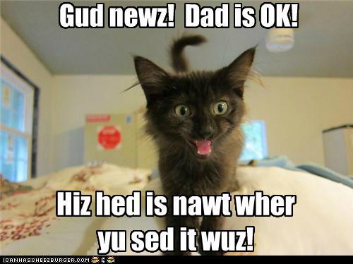 Time for More Kitty Funnies 10 Thursday Nov 2011 Posted by aprilsatelier in Cats, Cats and More Cats ≈ 1 Comment Tagsfunny cat pictures, Icanhascheezburger, LOLCats It’s been a while. Some recent favorites from the Cheezburger website 😀 Apparently, drunks in any species are annoying, but this could be a catnip overdose too. Designer Kitteh... I'm sure I'll think of something. Monty Python fans will better grasp this one... Share this: Click to share on Facebook (Opens in new window) Facebook Click to share on X (Opens in new window) X Like Loading... Related