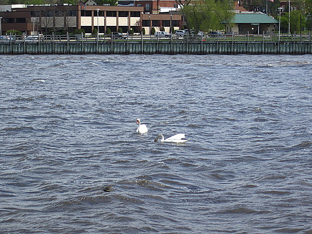East Jordan is situated where the South Arm of Lake Charlevoix peters out into the Jordan River (not the one of Biblical fame), off to the right in this frame. Swans have long lingered here and it is more common to see them than not, here at this boat launch.
