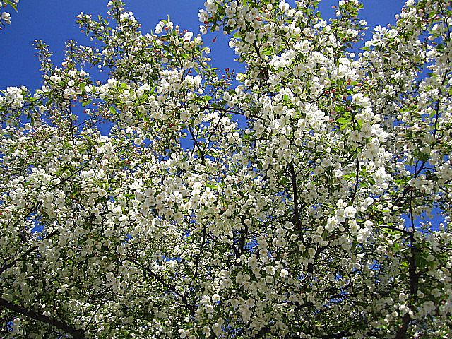 A very peculiar Spring cheated us of a lot of blooms downstate as far as fruit trees, but in Charlevoix, I found this lovely (outside of a quilt shop, which I shall write about on another day.)