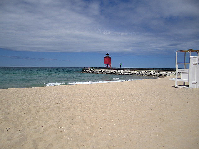 Much of the western coast of Michigan is blessed with dramatic dunes, most especially to the south of here. But there is a bit to see looking up the shoreline from Charlevoix to Petoskey. I am on the southern of two piers which flank a channel, leading from Lake Michigan through Charlevoix and into Round Lake. Sadly, I did not get a good image of the drawbridge which connects the two bodies of water, but I will next time.)