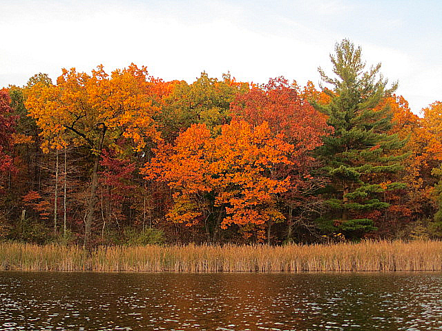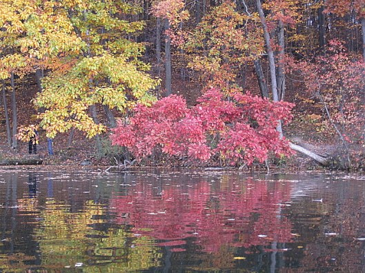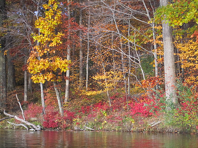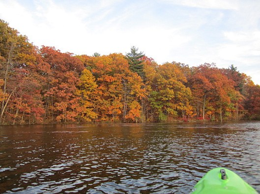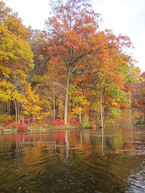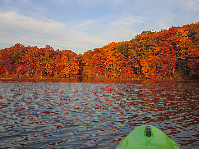 About 2-3 weeks ago, when the temperatures were forecasted to reach 75 degrees, I suggested to hubby that we take the kayaks out after work for a last paddle of the season and enjoy some fall colors. They got more vibrant as the evening went on. I did nothing to touch up these brilliant shades; it was merely the effect of the setting sun. (A lovely time was had by all… two of us.)